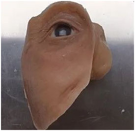 设计完成后,3D打印所需的相关模型,并制作与Lola肤色相近的硅胶假体,完成后安装在Lola的面部即可。